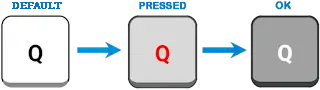 OK – After the key press is confirmed, the key will highlighted and turns grey with a white letter, plays a sound, and shows the letter you pressed in the box above to confirm the input was successful.